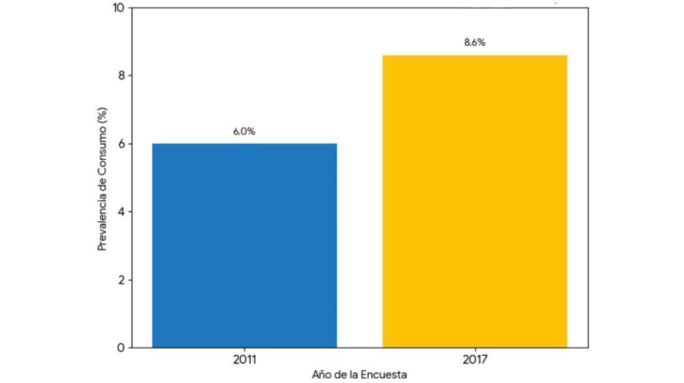 Elaboración propia a partir de los datos de la Encuesta Nacional de Consumo de Drogas, Alcohol y Tabaco (ENCODAT) 2011 y 2016-2017 (Instituto Nacional de Psiquiatría et al., 2017).